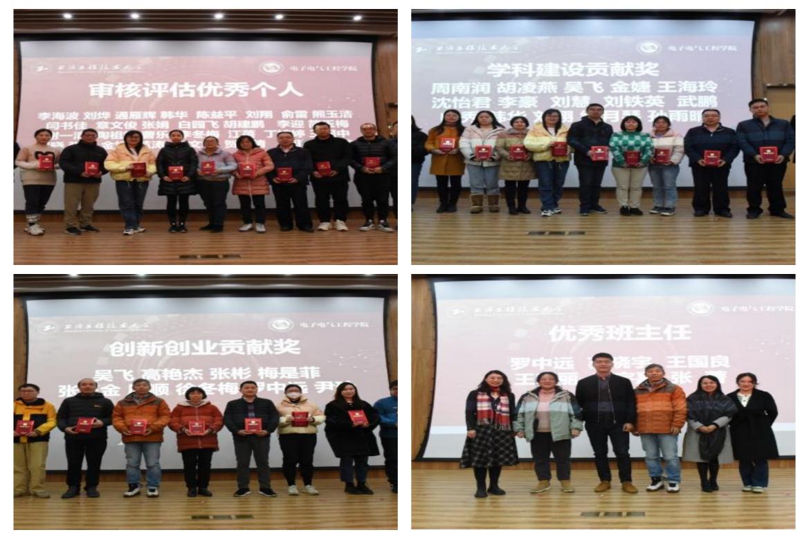 随后,公司领导班子为获得学习强国月度学习之星、优秀党支部书记、师德师风优秀人员、年度考核个人优秀人员、管理先锋、优秀班主任、团队建设贡献奖、就业先进个人、优秀辅导员、创新创业贡献奖、上海高校辅导员团队拓展活动三等奖获奖人员、教学先锋、产学研协同之星奖、优秀教学建设奖、审核评估优秀个人、高水平论文之星奖、科研先锋、国际交流贡献奖等获奖教工进行颁奖。