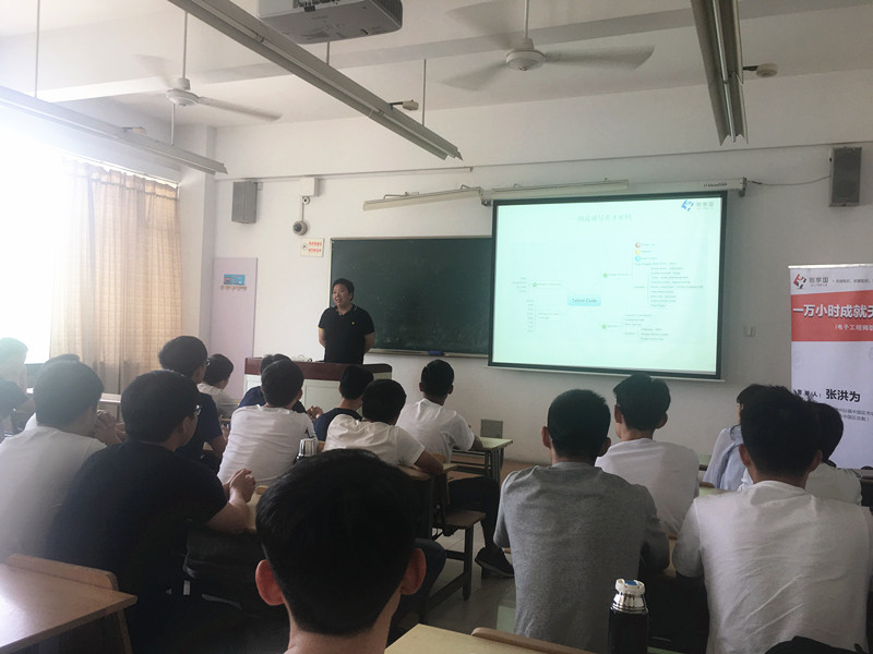 上海瀚决网络科技有限公司CEO张洪为是这次宣讲的主讲人,他以伟大的不是出生,而是成长为主题,从“别人家的孩子”谈到自我的“逆袭”,为大家介绍了自己亲身的工作和生活经历,希望同学们能够从他的身上了解到公司的工作特色,又从“IT界的宿命”谈到“电子工程师的七十二绝技”,运用诙谐幽默的语言和几组验证数据让同学们对公司的规模和服务范围有了更直观的了解,也对未来的产学合作内容和就业方向有了新的认识。最后,同学们踊跃投递自己的简历并介绍了自己的专项和特长,公司对到场应聘产学合作的同学进行了面试工作。