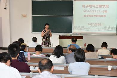 比赛现场,各专业老师同台竞技,各显其能。教师从CAD实验讲到图像处理,从前馈控制讲到了可再生能源,从关系的基本性质讲到了基本运算电路。比赛中,参赛的教师们仪表端庄,教姿自然大方;课堂讲授语言流畅、生动,概念清晰,条理分明、逻辑思维性强,重点、难点突出;将理论知识结合实际实例和视频,互动良好,课堂气氛活跃。此外,比赛还注意使用运用现代化教育方法,将德育思想注入课堂。整个竞赛过程中,11位老师抑扬顿挫的语音,独到的教学设计,巧妙地多媒体辅助演示,吸引着在场的每一位老师。最后,两位督导专家对11位老师的精彩比赛做了点评,从授课仪表到授课内容,再到讲课的方式和多媒体的使用,都进行了分析,同时也指出了青年教师在讲课时存在的一些问题。根据现场打分的情况,公司将推荐排名前三位的青年教师至公司参加校级教学竞赛。