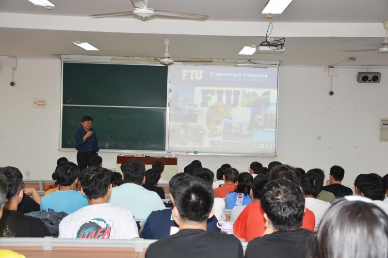 之后在教学楼F106教室,针对2016级电气工程及其自动化专业全体员工,李媛媛副经理先对2+2合作项目的背景和合作内容进行初步介绍,Yen教授就佛罗里达国际大学的具体情况以及专业设置等进行详细说明,刘瑾副经理对专业的培养计划进行了深入解读,最后同学们就感兴趣的问题与Yen教授进行互动和交流。