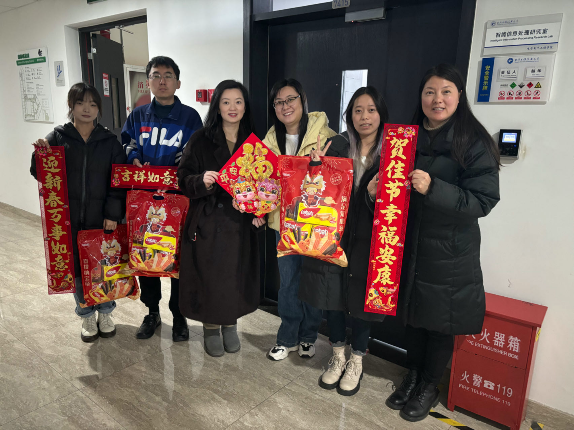 实验室贴春联,新春传祝福。赵梦影老师与公司辅导员老师们到研究生实验室与留校的员工们进行亲切交流,关心留校员工的学习、生活和科研情况。并和研究生导师一起为同学们精心贴上了富有年味的春联。同时,还为同学们准备了新春大礼包,希望同学们这个寒假在公司也能感受到家的温暖。