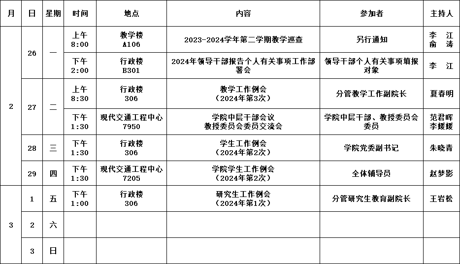 公司第1周活动安排(2024年2月26日-2024年3月3日)