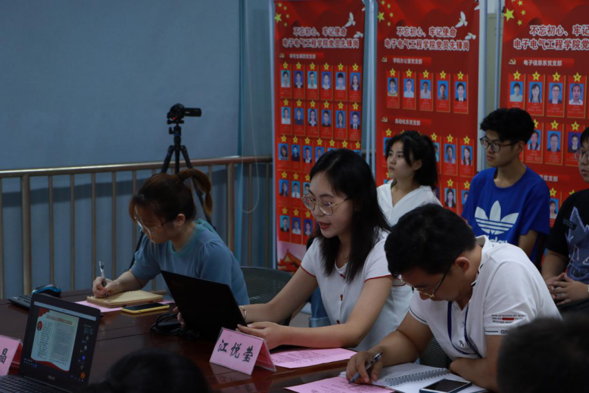 段海霞书记以“爱国情怀,责任担当”为题,从身边的抗疫先锋故事、疫情防控中的5G应用及“四史”学习展开,鼓励同学们学史明志、勇于担当,更对大家提出了爱党爱国爱校从我做起的期待。陈楠博士在以“青年力量,民族脊梁”为题的宣讲中,为我们讲述了习近平总书记的青年故事,分享了不同时代的青年风貌,展现了青年们作为民族脊梁的中华精神。江悦莹同学“以国之名,命运与共”为题的宣讲中从习近平总书记的回信感悟切入,结合“共和国勋章”获得者们的故事提出我们每一个人都与祖国共命运。