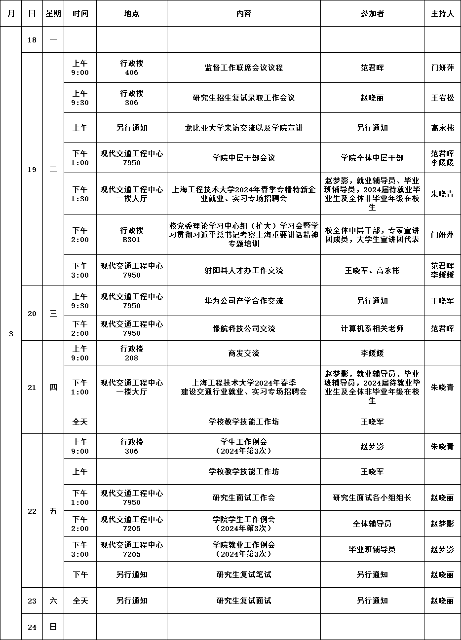 公司第4周活动安排(2024年3月18日-2024年3月24日)