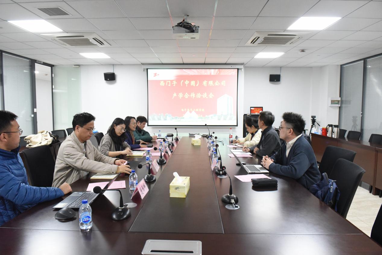 2024 年3月15日下午,西门子(中国)有限公司创新与人才发展市场发展总监董丙武、教育合作华东区市场发展经理刘强、高级客户经理(上海区)戎雅芸一行来院产学合作洽谈。电气公司党委副书记、经理李媛媛,党委委员武鹏、党支部书记张菁、自动化系副主任通雁辉以及公司员工工作辅导员江文超等老师热情接待。此次洽谈旨在推动新质生产力的发展,促进校企协同人才培养。