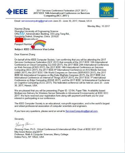 近期,在美国夏威夷召开的第14届IEEE International Conference on Services Computing(IEEE SCC 2017,IEEE服务及计算国际会议)会议上,3044永利集团张晓梅等教师发表了“Availability based Multiservice Delivery for Wireless Sensor Networks in Adversarial Environments”的论文。IEEE SCC是由IEEE通信协会(IEEE Communications Society)发起的、服务计算领域旗舰性的顶级国际学术会议,每年六月底定期召开一次,它涵盖了服务创新研究,包括业务组件化、服务建模、服务部署、服务组合、服务生命周期、服务协作、服务监控、服务优化,以及服务管理等IT服务和计算技术行业中与应用密切相关的热点研究领域。此次大会文章录用率为20%。
