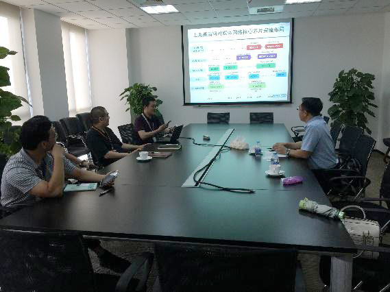 下午,我方一行又来到浦东三里桥数字产业园区,参观上海高清数字科技有限公司,戴扬总裁、王峰副总裁,分别对公司的现况和发展做了详细的介绍,接着带领方经理一行对研发中心、工程中心等各个部门进行了参观并展示了公司的一系列研发成果,尤其是全息3D视音频工作室给大家留下了深刻的印象。然后方经理提出希望在本科生、公司产品及实习、联合开展研究等多方面进行深入的合作,从而进一步为广播电视工程专业的应用型本科建设打下坚实的基础,双方就此展开了热切的交流,并提出了一系列合作的方案。