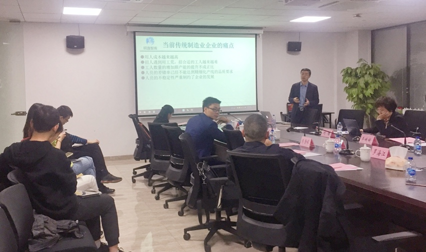 根据议程,首先请企业负责人分别作了专项报告。苏州明逸智库信息科技有限公司王亮董事长以《智能制造3.0的关键技术及发展》为题,详细介绍了智能制造的国家战略、产业背景和发展趋势,深入分析了智能制造关键技术、特点和具体案例,给出了智能制造的落地思路。
