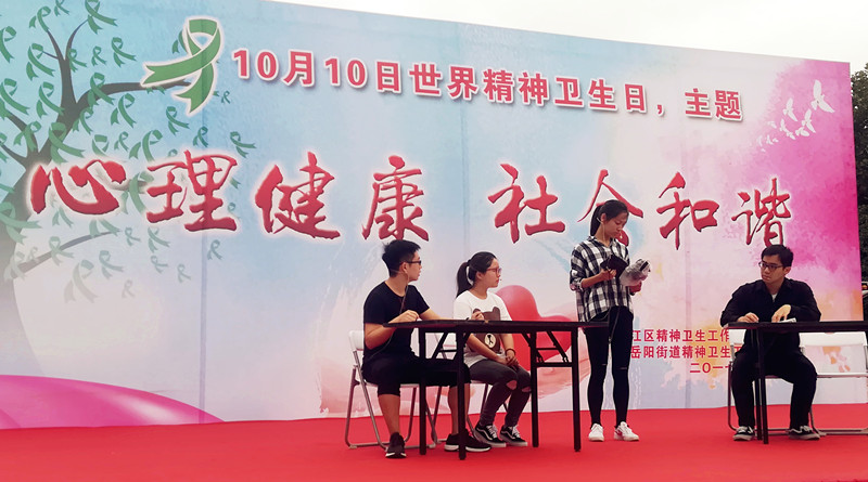 2017年9月27日上午,松江区精神卫生中心在松江大润发广场主办了2017年世界精神卫生日公益活动,主题为“心理健康,社会和谐”。公司心理剧团队师生一行受邀参加了本次活动的公益演出。