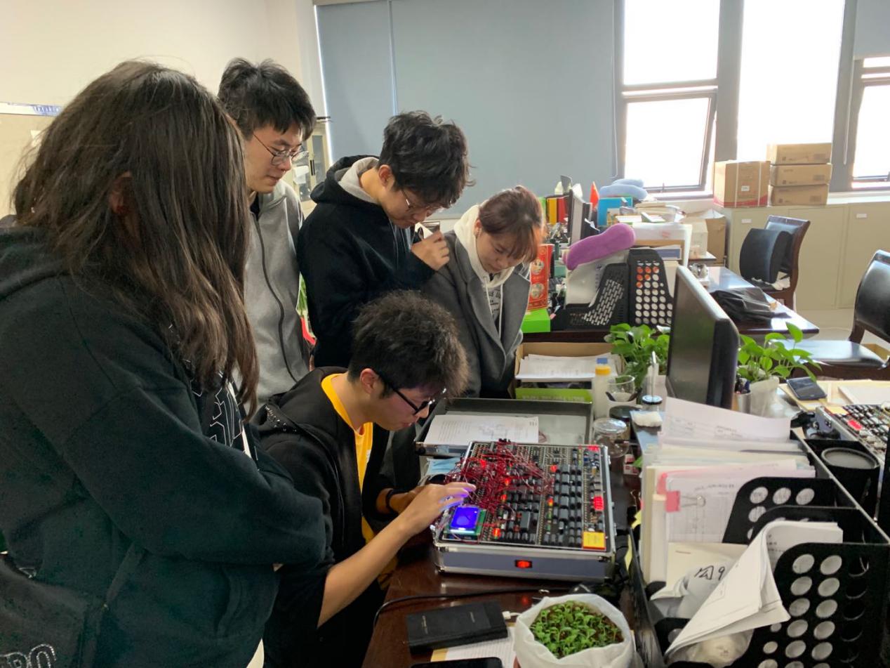 下面正式介绍我们照片的主角——陈珏老师。这两张照片是吃瓜老师在陈珏老师辅导员工时偷拍的,他正在进行计算机硬件综合实验的操作演示和指导。一般来说,在课后找老师答疑的员工可以说是比较少的,但是从图上可以看出陈老师的欢迎程度,作为计算机系的另一名教师,这几天可以说是体会到了办公室门庭若市的热闹,员工高涨的学习热情,体会了网红和眼红,体会了冷暖自知。