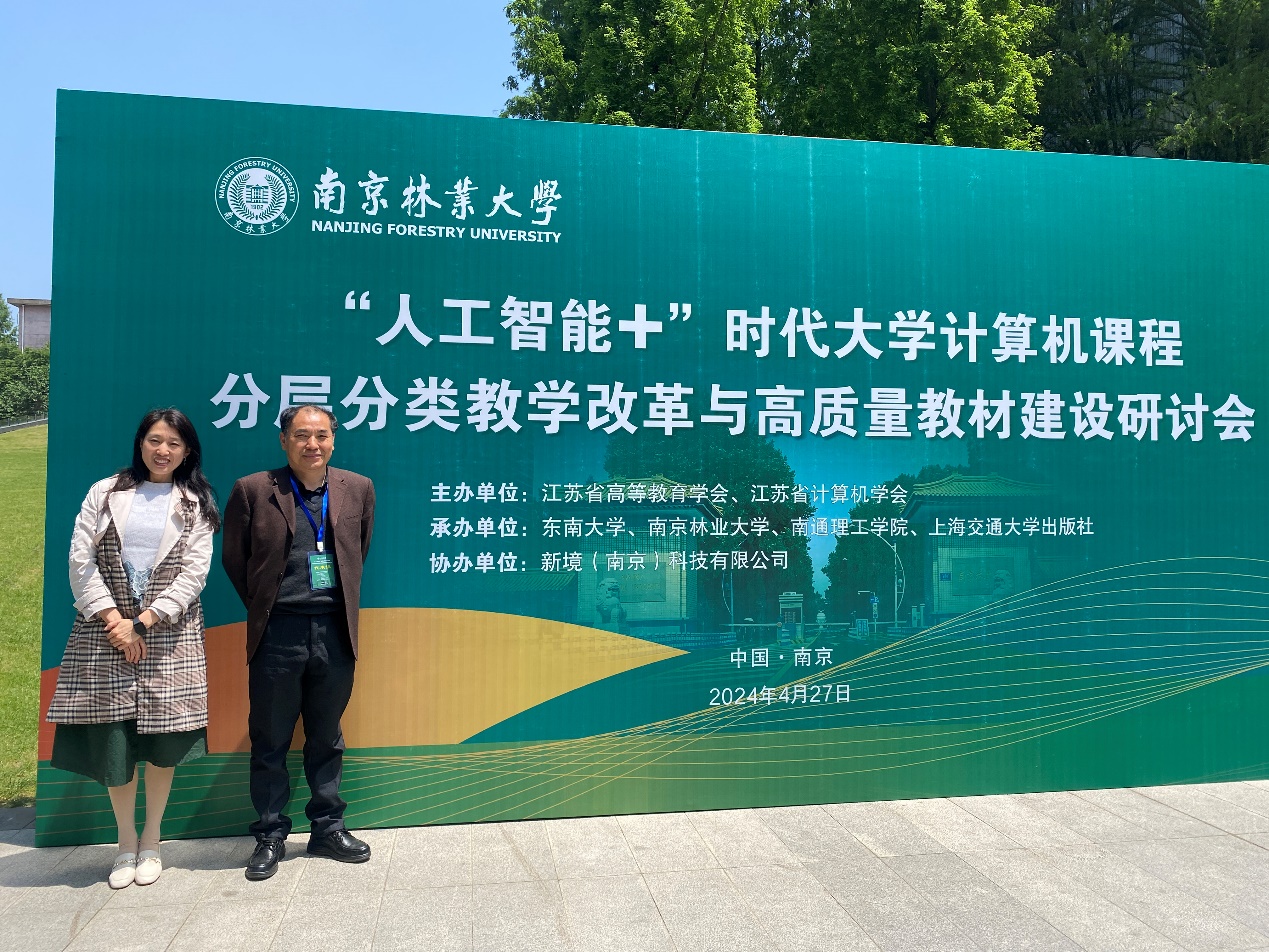 伴随《新时代大学计算机通识基础课程的教学基本要求》的出版,人工智能新时代对计算机类通识课程建设提出了新的要求,同时公司也对计算中心承担的《计算机应用基础》课程提出了新一轮的教学改革要求,计算中心全体教师在总结2021年以来教改成果的基础上,充分讨论新一轮教改的整体思路,为了制定切实可行的教改实施方案,先后调研了几所上海头部高校建设“人工智能”通识课程的教学方案,并于4月27日,计算中心陈强教授和刘惠彬老师实地参加在江苏南京召开的“人工智能+时代大学计算机课程分层分类教学改革与高质量教材建设研讨会”,与来自全国各地的计算机类课程授课专家进行深入交流学习。