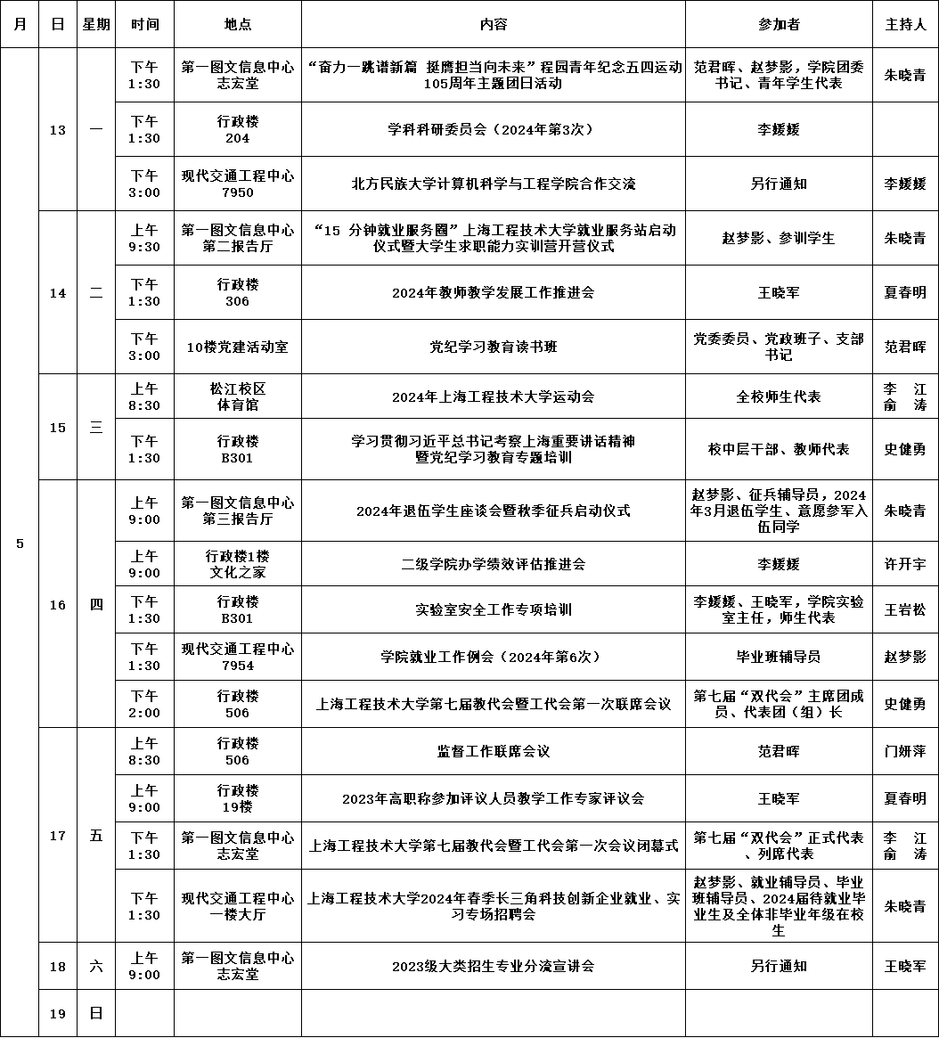 公司第12周活动安排(2024年5月13日-2024年5月19日)