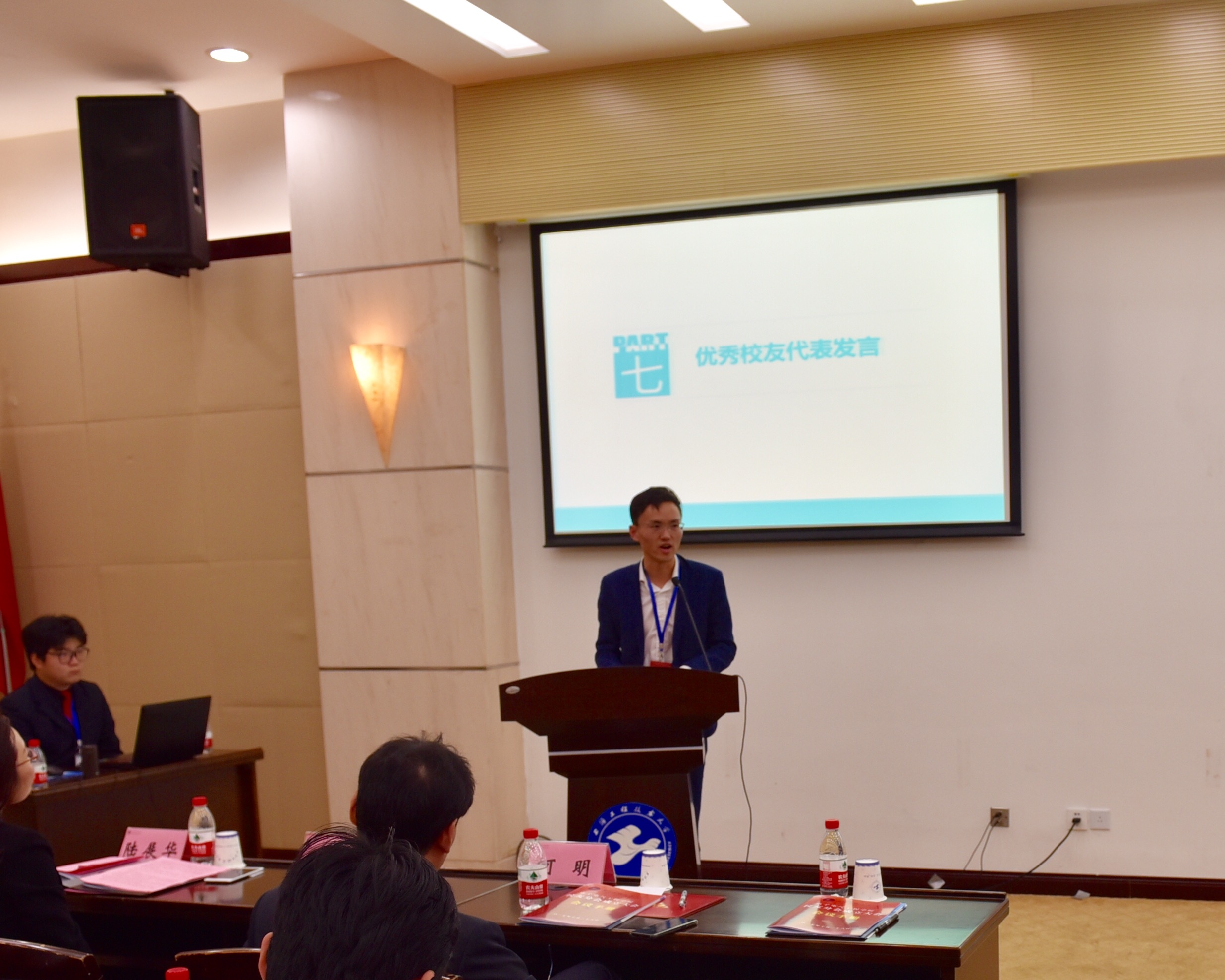 随后,公司2014届计算机科学与技术专业的员工,“淘洗洗”智能洗衣品牌创始人,松江区青年联合会第四届委员邓洋洋作为优秀员工代表上台致辞。他讲到:“在我创业出现困难的时候,公司的领导和老师为我主动提供各种帮助和便利,母校对我的关心增加了我继续前行的信心。” 他引用诗句“落其实者思其树,饮其流者怀其源”来表达自己的感恩之情,并强调自己将与各位员工一起,一如既往地关注母校的建设,支持母校的发展,用我们共同的行动和集体的力量回报恩师的哺育,回报母校的滋养。