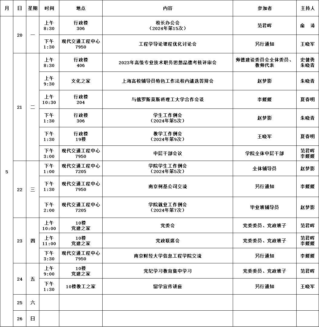 公司第13周活动安排(2024年5月20日-2024年5月26日)