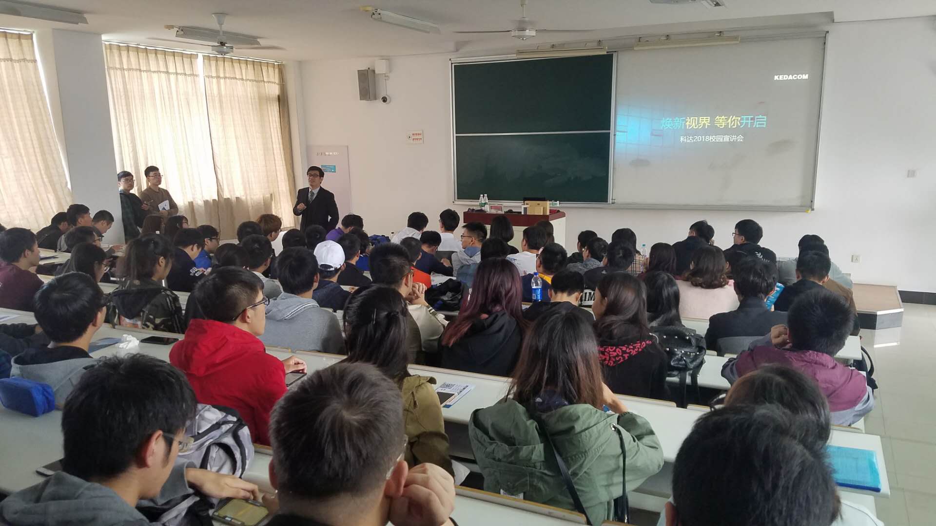 2017年10月23日下午14:50-16:50,在教学楼F514举行了科达科技股份有限公司的二级市场宣讲会,公司本科生、研究生毕业生参加。科达科技股份有限公司的成志刚经理通过播放宣传片、PPT展示、面对面交流等方式向同学们介绍公司的概况、职业发展方向、人员需求以及选择该单位的理由等。此次招聘的岗位主要为软件测试工程师、C++开发工程师、Java开发工程师、资料开发工程师等,成志刚经理表示公司非常欢迎广大相关专业的同学踊跃报名应聘,同学们之后积极的投递了简历。