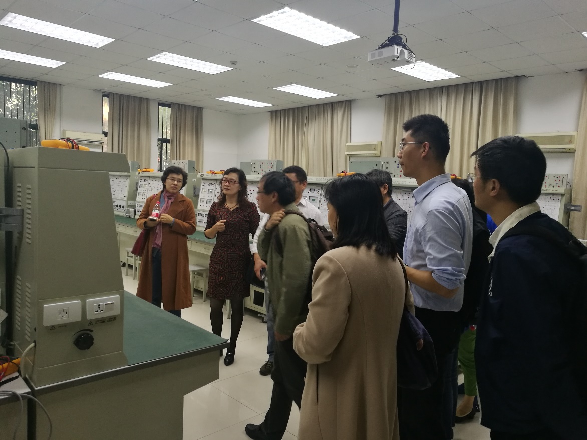 随后,在杨所长的带领下,各位老师参观了本科教学的电力电子、自动控制、电机控制等实验室,并就本科实验课程的教学模式与课程设置、实验室的建设与管理等方面与浙大老师进行了深入的交流。