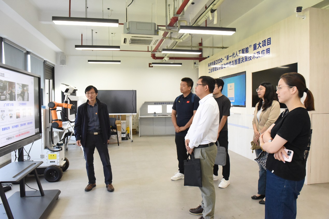 2024年5月28日下午,航翼公司常务副总经理刘欢、技术开发部部长肖鹏、研发工程师李聪、东华大学方秀博士等几位专家来院进行合作交流。会议开始前,一行人首先参观了公司智能感知与控制国际联合实验室和5G+人工智能应用联合创新实验室。