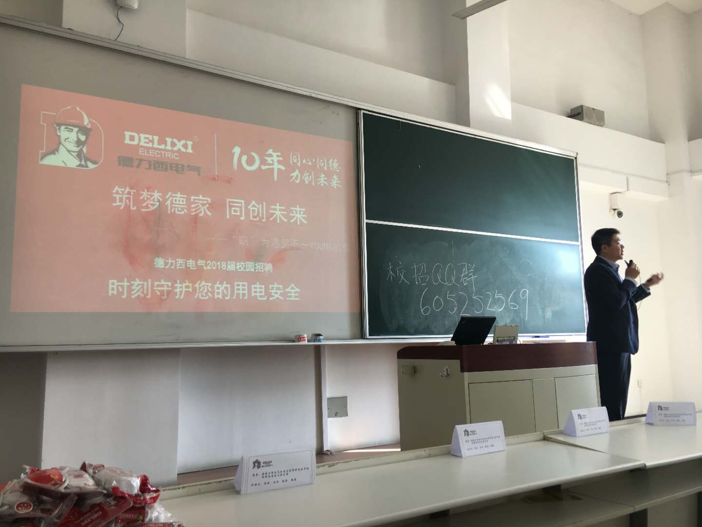 2017年10月31日下午13:00—14:30在教学楼E315举行了德力西电气有限公司的二级市场宣讲会,公司毕业本科、研究生参加了此次活动。德力西电气有限公司的金老师通过播放宣传片、PPT展示、面对面交流等方式向同学们介绍公司的概况、职业发展方向、人员需求以及选择该单位的理由等,此次招聘的岗位主要为工业工程师、设备工程师、安全工程师、工艺工程师等,经理表示公司非常欢迎广大相关专业的同学踊跃报名应聘,同学们之后积极的投递了简历,并参加了德力西电气有限公司的现场测试。