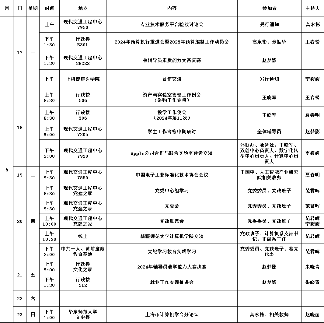 公司第17周活动安排(2024年6月17日-2024年6月23日)