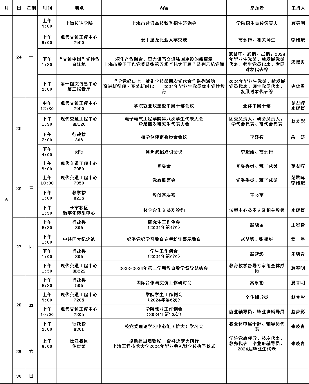公司第18周活动安排(2024年6月24日-2024年6月30日)
