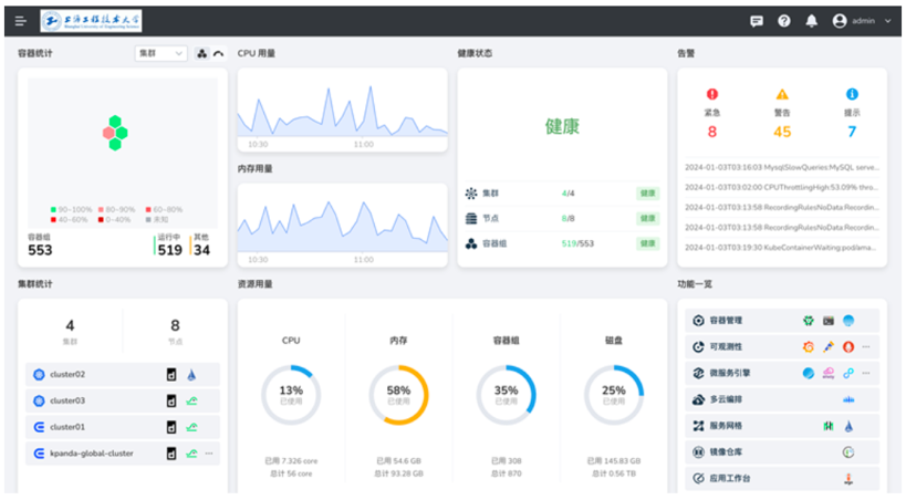 云原生应用云平台在数字智能转型中以其高性能、可扩展的特性,实现了在各类企业环境中的广泛应用,推动了企业从传统IT架构向智能化、数字化运营的转变。在多个场景下,企业利用云原生应用云平台优化了其核心系统和数字化服务。通过平台提供的微服务和服务网格技术,重新架构了传统的单体应用,拆分成多个独立的微服务。这使得企业能够快速响应市场需求变化,进行快速的功能迭代和故障隔离。平台功能:多集群管理,云原生应用管理,跨集群负载统一管理能力,持续性业务交付。
