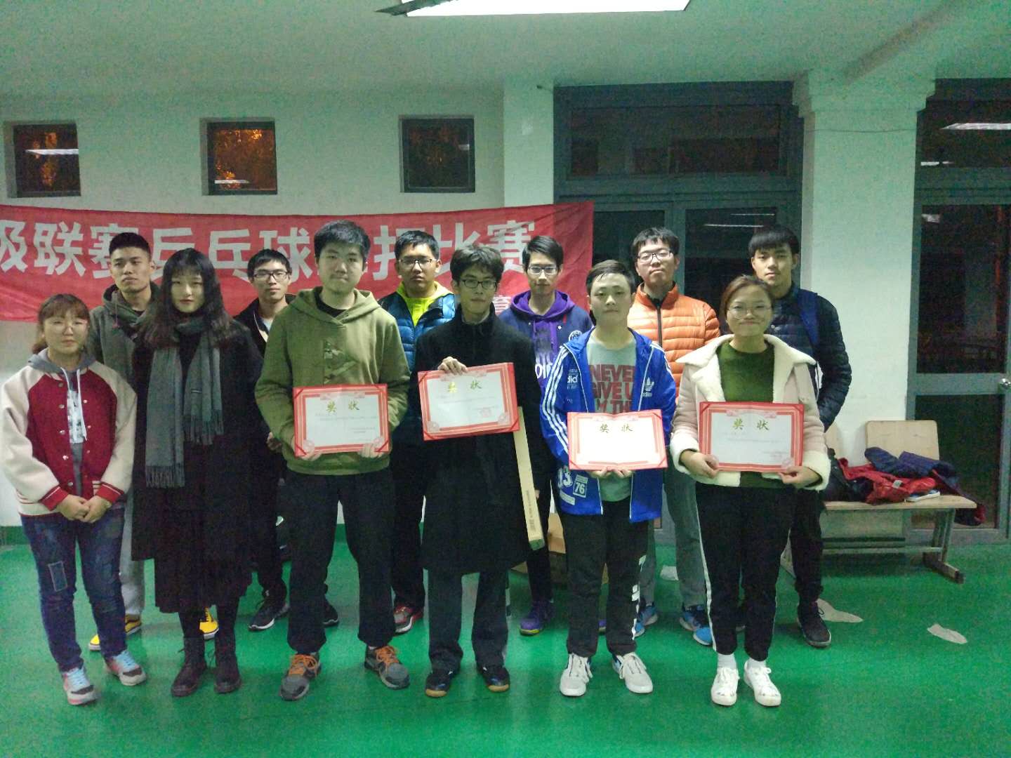 连续一周的比赛从预赛到8强再到决赛每天大家都乐此不疲。出其不意的扣杀,精妙的布局让人又期待又亢奋。男单决赛由研究生学长蔡文焱和大一陈元涛,大二陈元涛互相争夺,比赛一开始蔡文焱对陈元涛以拉球开局 ,正反手快带让人眼花缭乱,蔡文焱犀利的下旋球,精准的扣杀助其先下一局,随后回合赛第二场又以稳健的防守让朱逸峰的连续扣杀无果最后夺冠,陈元涛朱逸峰互相鏖战最后分列亚季,女生组虽然人少但气势,技术毫不羸弱张霞鏖战夏梦静,在正削,退挡之下张霞夺冠。体育是竞赛也是娱乐,在紧张的学习生活中享受乒乓也让寒风变得温暖。