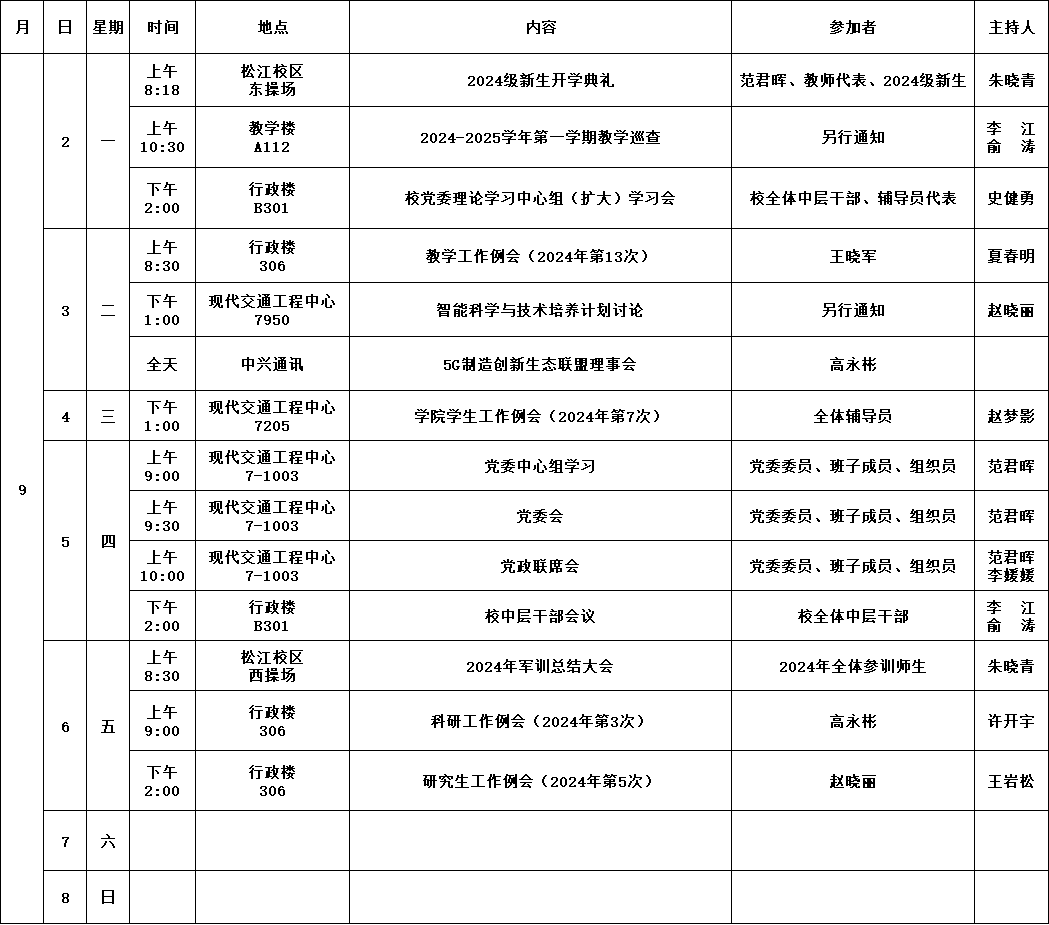 公司第1周活动安排(2024年9月2日-2024年9月8日)