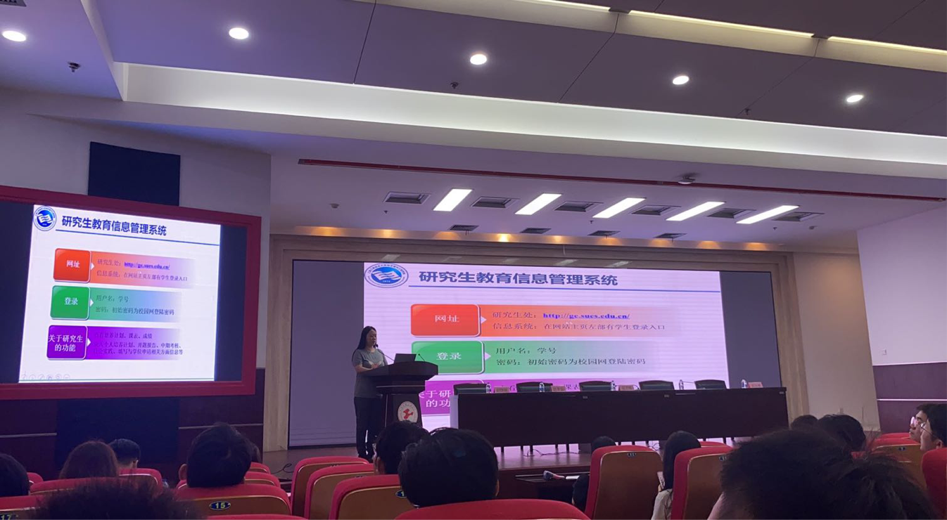 公司研究生秘书沈怡君老师为新生们详细介绍了公司公司产品流程及毕业要求。研究生阶段是同学们遨游在学术海洋的三年,也是遇到各类学术挑战的三年。沈老师建议新生们积极了解培养计划,主动和导师沟通,把握读研期间的重要节点。