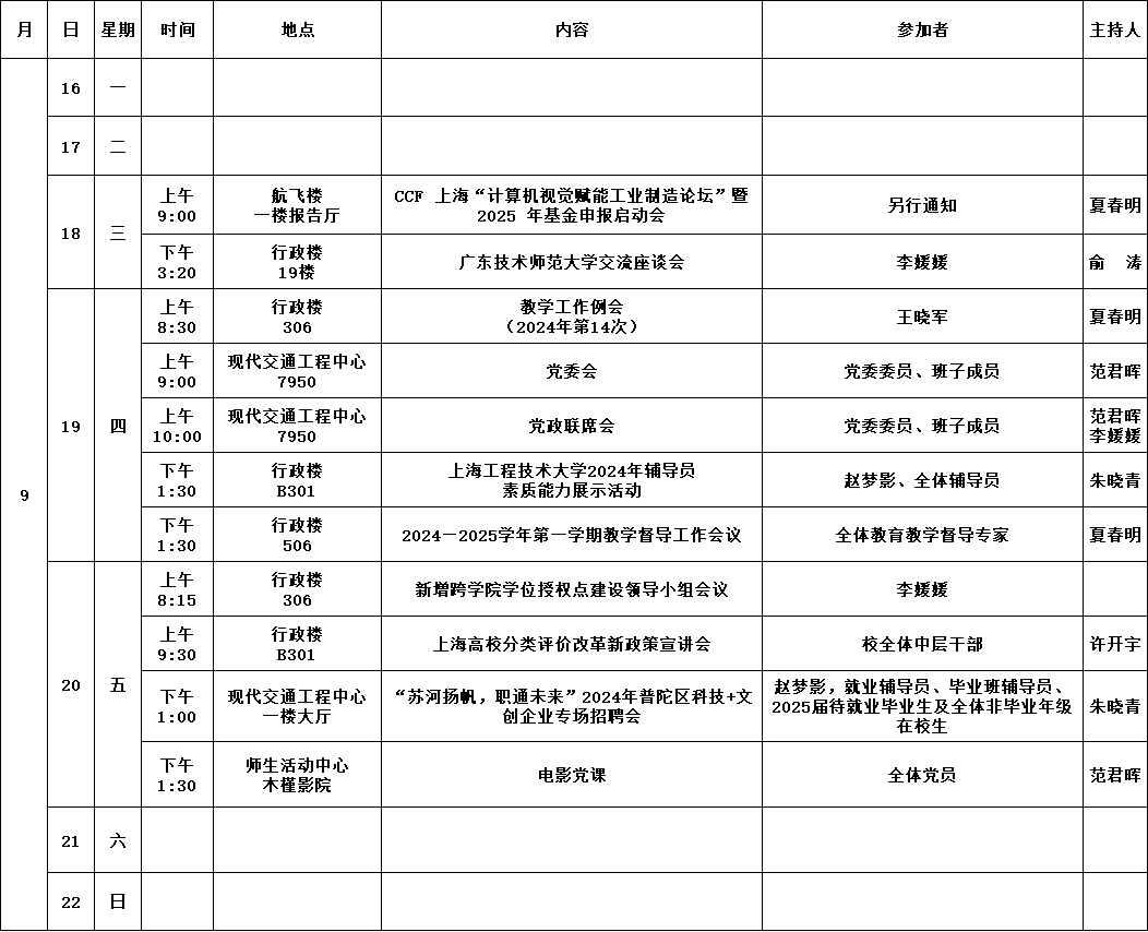 公司第3周活动安排(2024年9月16日-2024年9月22日)