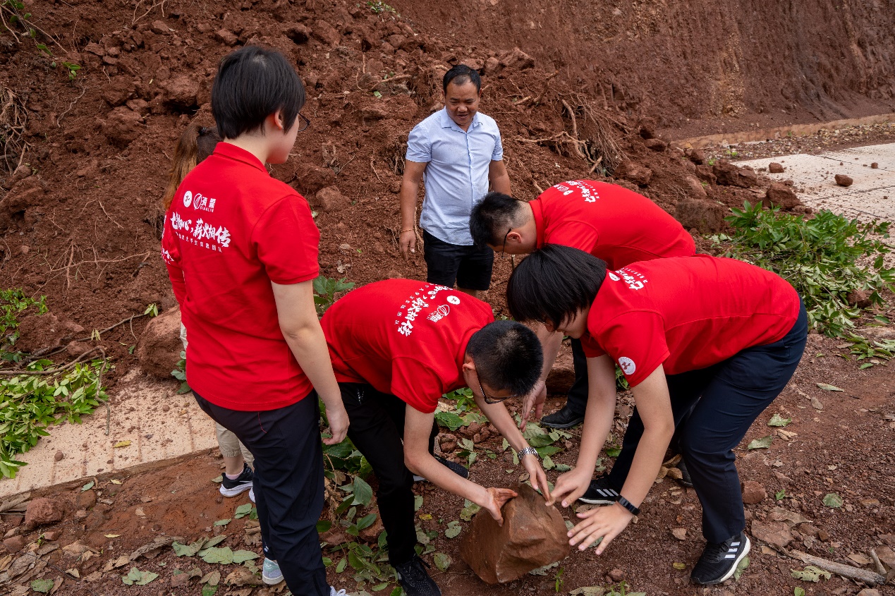 她不断持续性深入、了解当地农村情况,在实地走访过程中,她主动协助当地村民维护道路,与村民一起搬开因山体滑坡滚落在盘山公路上的巨石,为村民出行提供了力所能及的帮助。