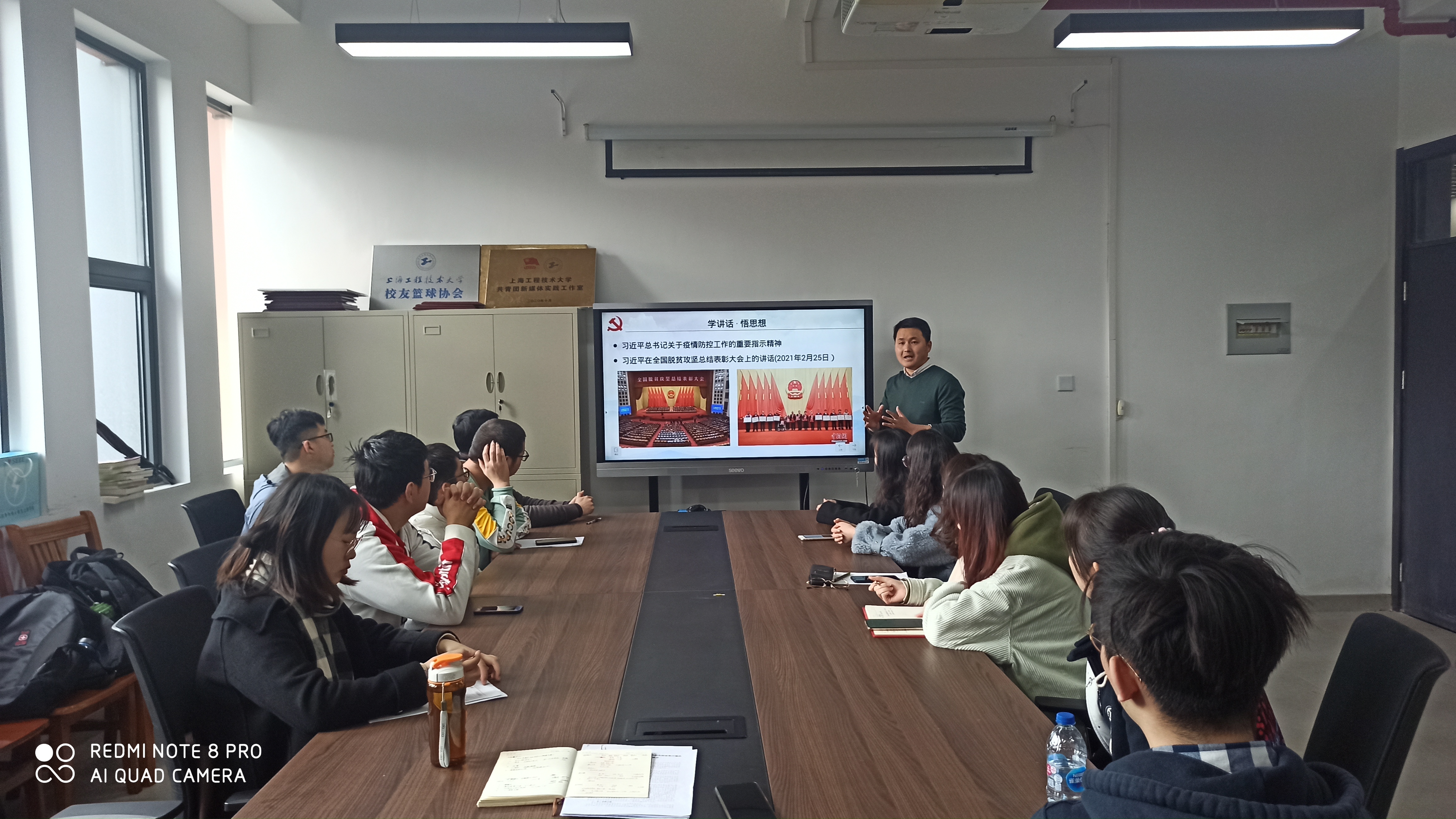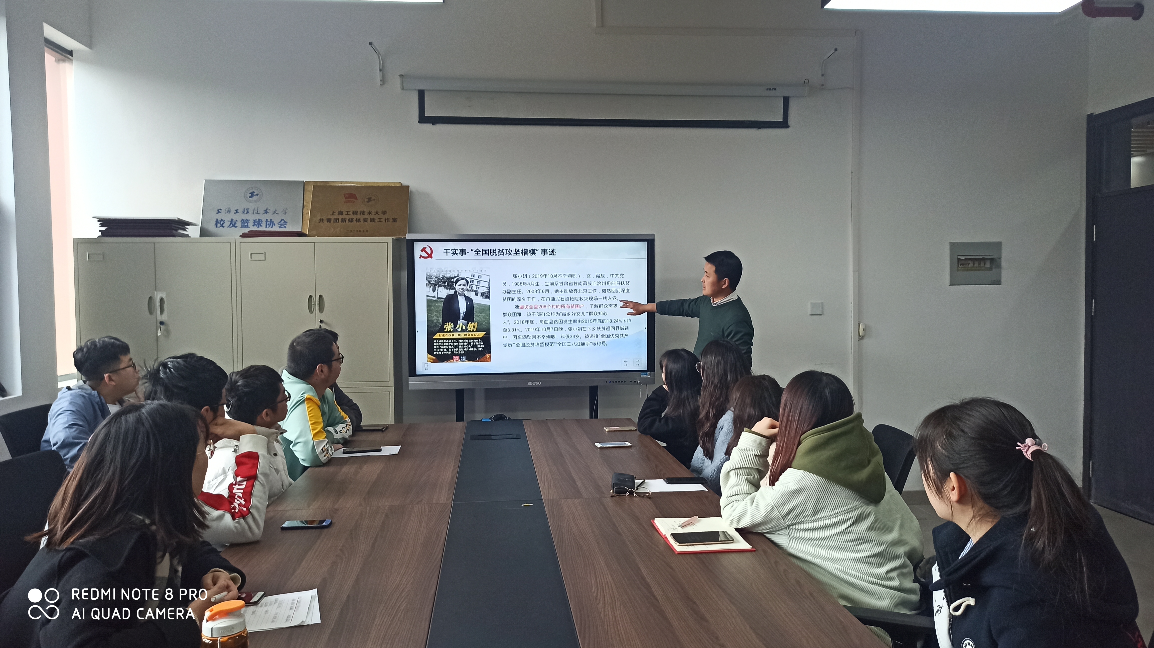 雷锋精神的践行重在脚踏实地“干实事”,高老师以毛相林、白晶莹、刘虎等十位“全国脱贫攻坚楷模”事迹作为学习的时代榜样,他们也是雷锋精神的传承者和弘扬者。同时,总结了支部同志一年来“学雷锋·干实事”的情况:在此期间,支部党员和积极分子积极在疫情防控志愿服务、抗疫捐赠、线上课程助手、社区维稳志愿服务、进博会志愿工作、义务献血、公司经理助理团、迎新服务、红色寻访等等中发挥着积极作用,在平凡的岗位和工作中弘扬“雷锋精神”,值得肯定、鼓励和进一步开拓。