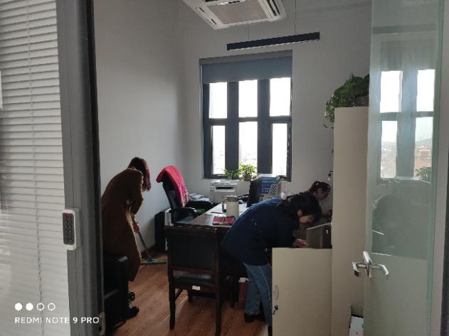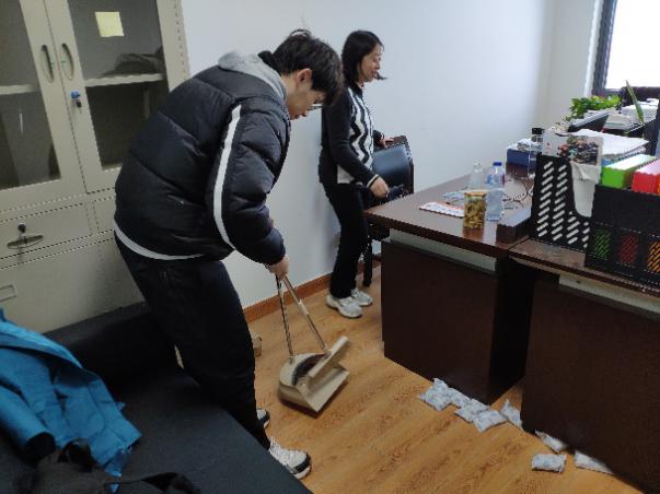 本次活动分为五个小组,大家分别前往公司的各个楼层,“挨家挨户”询问老师们是否有打扫办公室的需求。虽然有的房间面积不大,但是丝毫没有阻碍大家为公司老师服务的热情。擦灰、扫地、拖地、倒垃圾,同志们分工明确,各司其职,干得热火朝天。