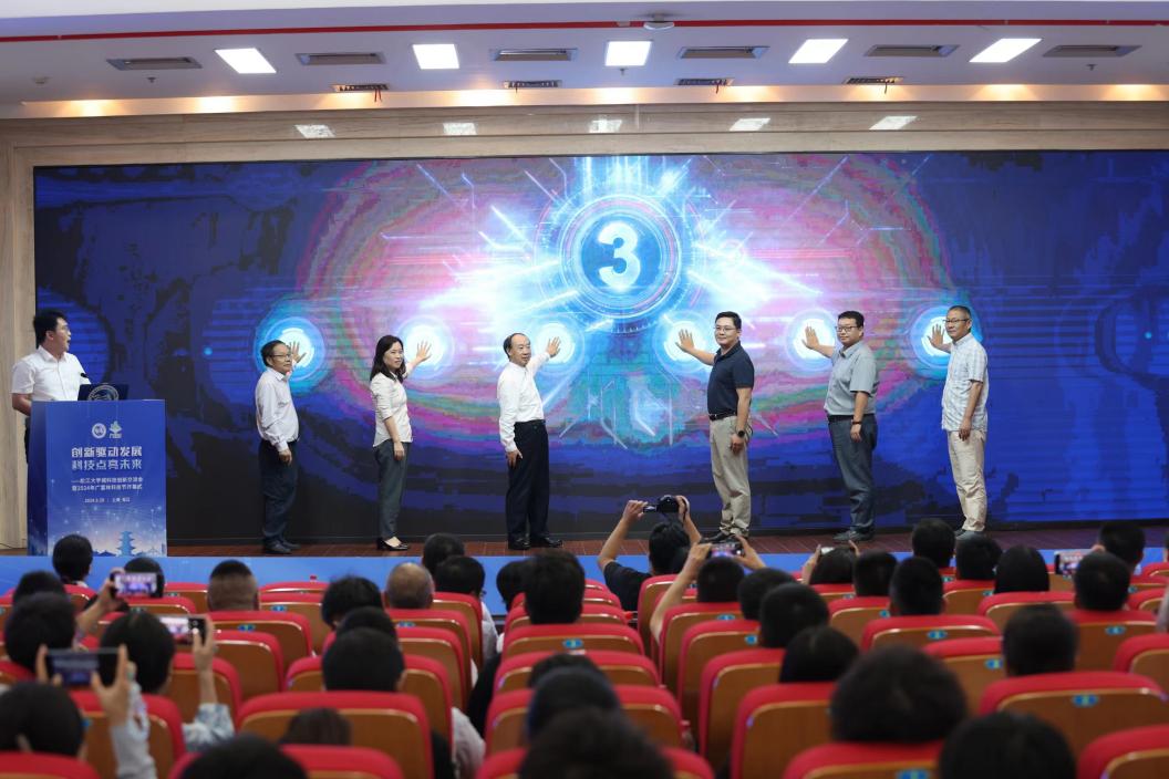 随后来自东华大学的孙以泽院士、市教委科技处副处长葛昊、广富林街道党工委副书记、办事处主任陈洁、3044永利集团研究生处长张华、东华大学材料科学与工程公司罗维教授、上海市教育发展有限公司董事长耿政松一起为“2024年广富林科技节”启动仪式点亮大屏幕。