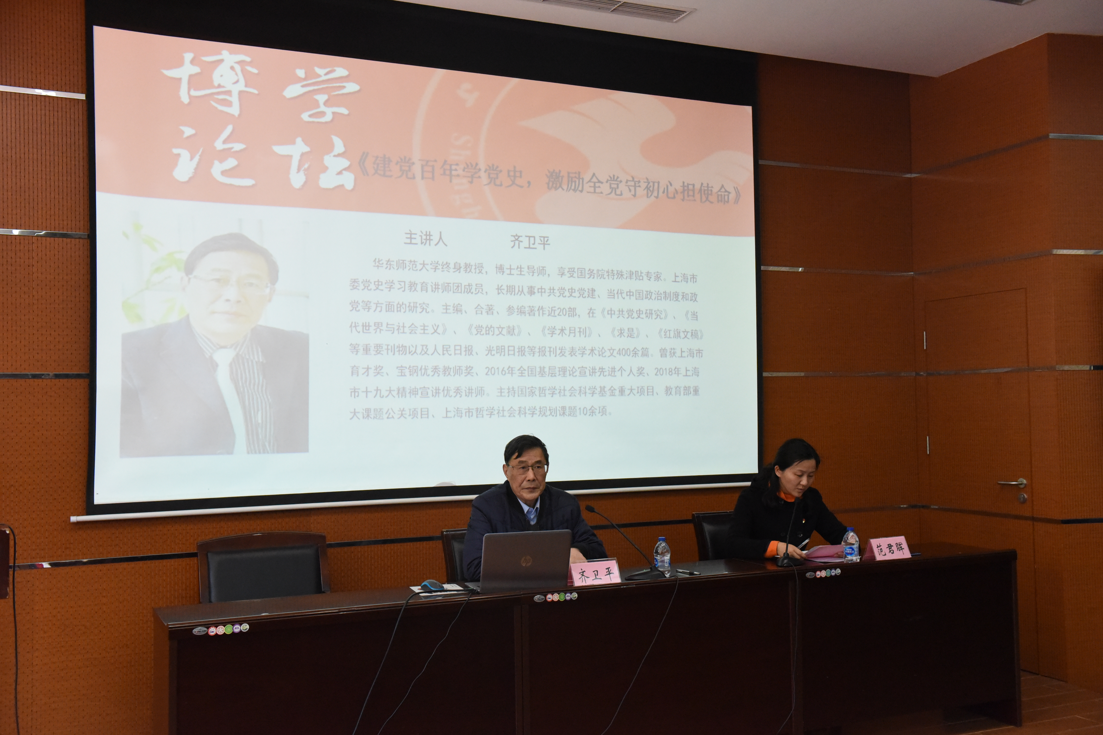 会前,华东师范大学终身教授齐卫平为全体师生党员带来《建党百年学党史,激励全党守初心担使命》的博学讲坛。齐教授讲道:学习党史,一是要树立正确的党史观。树立正确认识中国共产党的理性态度,坚持辩证唯物主义和历史唯物主义的思想方法。二是党史学习教育要抓住重点问题。学习中国共产党历史既要注重整体性、全面性、系统性,把握中国共产党历史发展线索,了解不同发展阶段的关键词。三是中国共产党百年发展壮大,是有其内在逻辑和基本经验的。我们要积极开展党史教育,这是牢记初心使命,推进中华民族伟大复兴的必然要求;是坚定理想信念、在新时代坚持和发展中国特色社会主义的必然要求,是推进党的自我革命、永葆生机活力的必然要求。