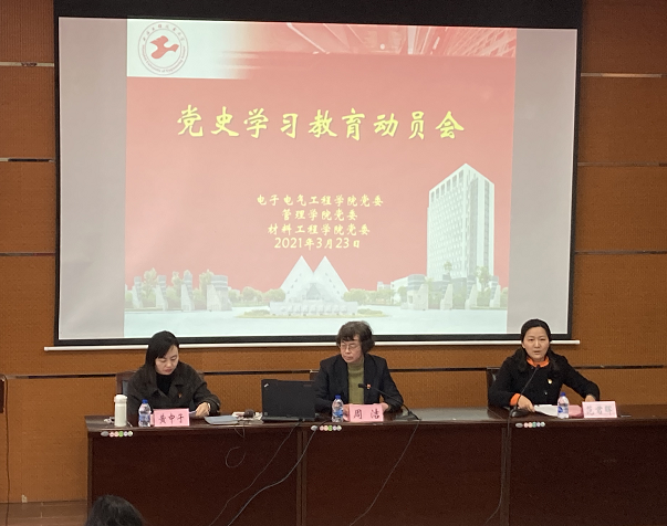 3月23日下午1:00,公司党委、管理公司党委、材料工程公司党委在航飞楼一楼报告厅开展党史学习教育动员大会暨党史教育联组学习,各公司的党委委员、党政领导、组织员、党支部书记、副书记、支部委员、本科生、研究生党员代表等参加会议。会议由公司党委书记范君晖主持。