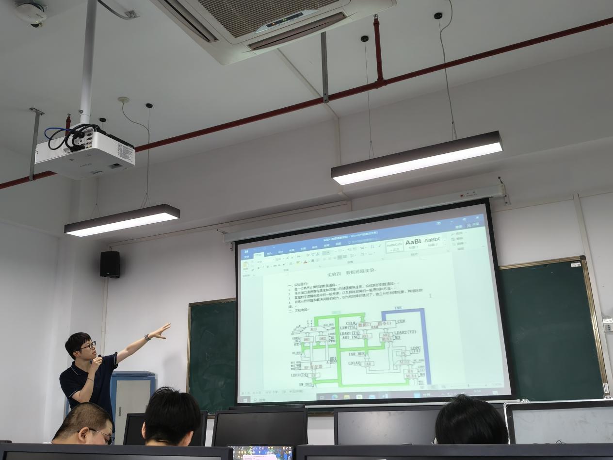 2024年10月18日上午,结合公司教学质量月活动安排,在现代交通中心的7605实验室内,一场别开生面的教学活动正在进行。本节课由已经有四年计算机硬件综合实验课教学经验的陈珏老师主讲,他带领员工们成功完成了“实验四 数据通路实验”,不仅深化了员工对计算机硬件知识的理解,还巧妙融入了课程思政元素,让理论与实践、技术与思想齐飞。另外,电气公司的新进教师和管理公司的教师代表旁听了这节课。