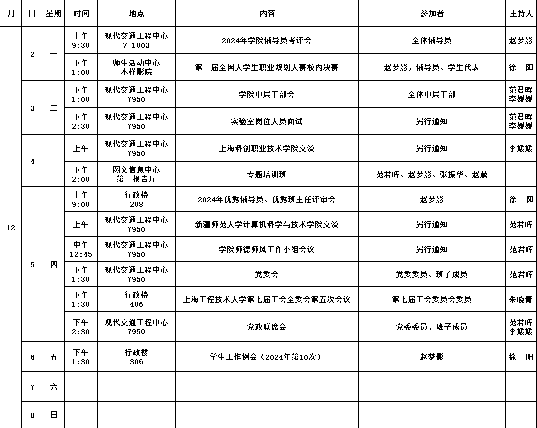 公司第14周活动安排(2024年12月2日-2024年12月8日)
