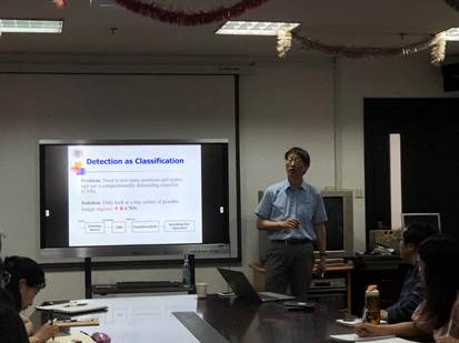 报告上,黄正能教授主要讲了用深度学习训练的卷积神经网络(CNNs)在分类、检测、分割及数据合成和特征变换的广泛应用,并回顾了CNN的近期发展,以及如何将这些CNN成功的应用,为大家在相关领域的研究提供了新方向新方法。整个会场座无虚席,报告内容深受师生欢迎,大家获益匪浅。