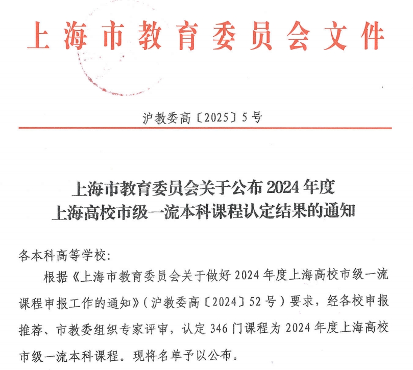 公司一门课程获批2024年度上海高等公司一流本科课程
