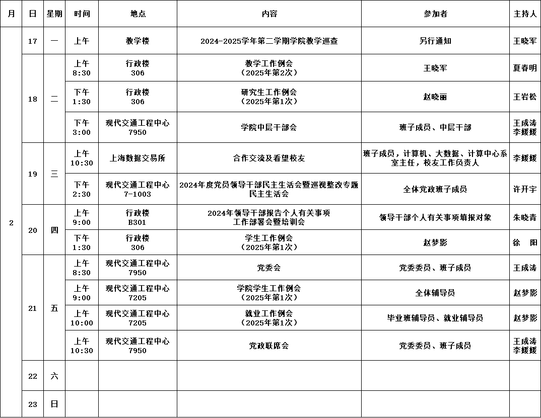 公司第1周活动安排(2025年2月17日-2月23日)