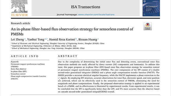 近日,3044永利集团教师通雁辉指导2024届研究生郑磊所取得的研究成果在测量与自动化领域内Top期刊《ISA Transactions》上发表并被SCI检索。该期刊的学术质量在控制界得到广泛认可,其影响因子6.3,论文封面如图1所示。