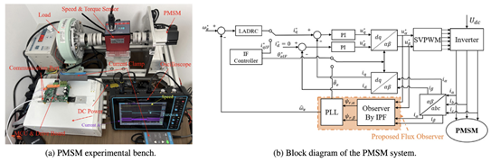 论文聚焦永磁同步电机的无传感器控制策略和方法研究,提出了一种基于同相滤波器的磁链估计策略及无传感器控制方法,并设计开发了一套永磁同步电机实验平台来验证所提出的控制方法的效果和性能水平,实验平台如图2所示。实验结果表明:利用论文多提出的方法所获得的转子位置估计精度和转速控制效果都要优于传统的低通滤波方法和级联二阶积分方法,如图3所示。因此,该方法在工程中具有很大的应用潜力。