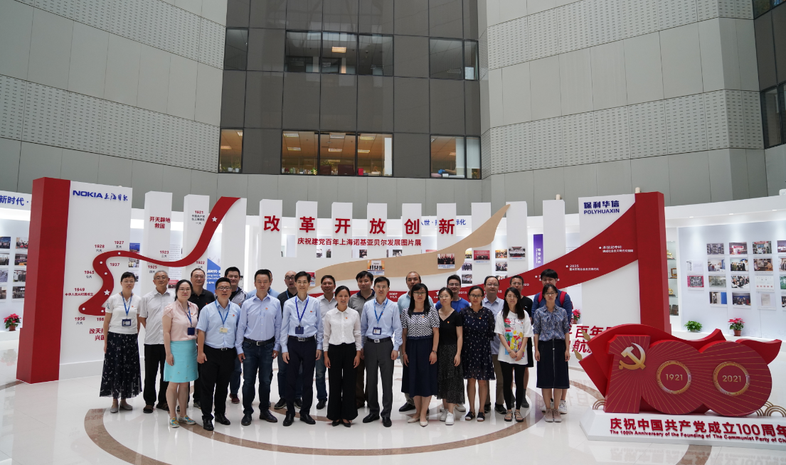 公司一行在上海诺基亚贝尔公共职能党总支书记、公司党群部部长陈一东和移动网络党总支书记、移动网络集团副总裁王勇的陪同下,参观了上海诺基亚贝尔实验中心、学创中心、职工文化长廊、庆祝建党百年公司发展图片展等,并进行了深入的座谈交流。