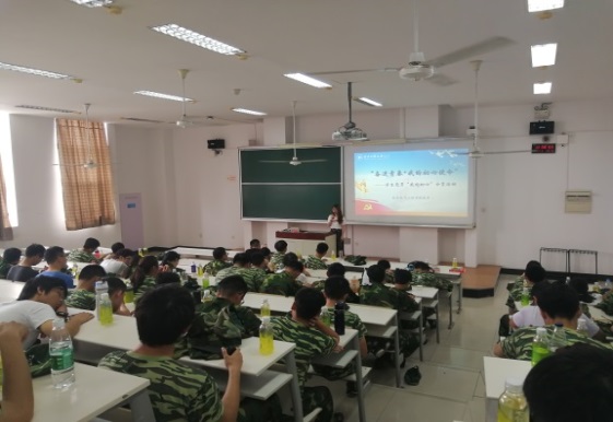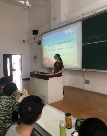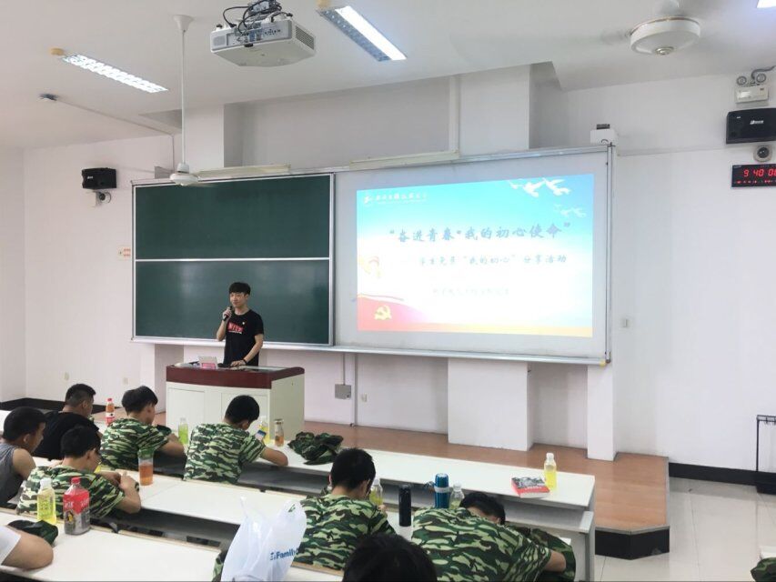 集体重温誓词结束后,各支部员工党员代表,带领17级“新兵”进入班级,开展了以“奋进青春·我的初心使命”——员工党员“我的初心”分享活动,为新生们诠释和分享了一位党员的初心和使命。他们有从一名员工会骨干的角度分享了自己从普通新生、推优对象、积极分子、发展对象到最终被党组织吸纳成为一名中共党员的入党历程,结合自己入党的初心,谈到自己入党动机的转变、党性修养的磨练、理想信念的坚定;也有党员则结合军训的主题,回顾了中国共产党的奋斗史、战争史和血泪史,通过对一场场历史经典战役的讲述,再次为新生们重现中国共产党是如何通过卓越的智慧、不屈的意志、牺牲的精神救中国于水深火热之中,以此联系到新时代党员应该如何传承这份责任和使命;还有党员们则以“担当作为、示范引领”为切入点,以初心、致匠心,提醒广大新生要潜心学业、提升自我、掌握本领方能有所担当,成为社会和人民需要的栋梁之才。