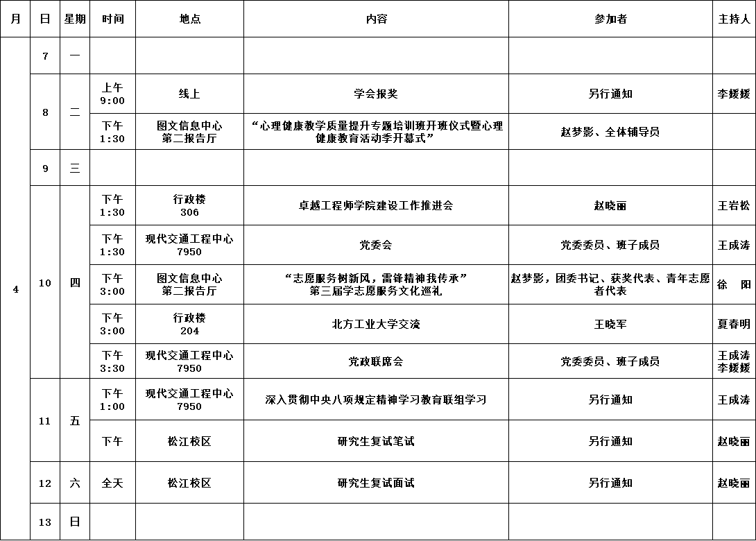 公司第8周活动安排(2025年4月7日-4月13日)