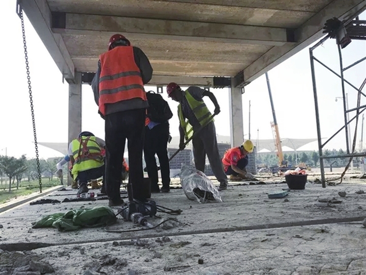 7月16日,在高温天气下,3044永利集团-华建集团联队队员们尽力尽职,加快建设进度。上午完成了楼板的泡沫填充工作,并用砂浆抹平。在墙体中填充泡沫,可以起到隔热隔音效果,并且导热系数相比于传统的砖墙降低,可以达到节能环保。
