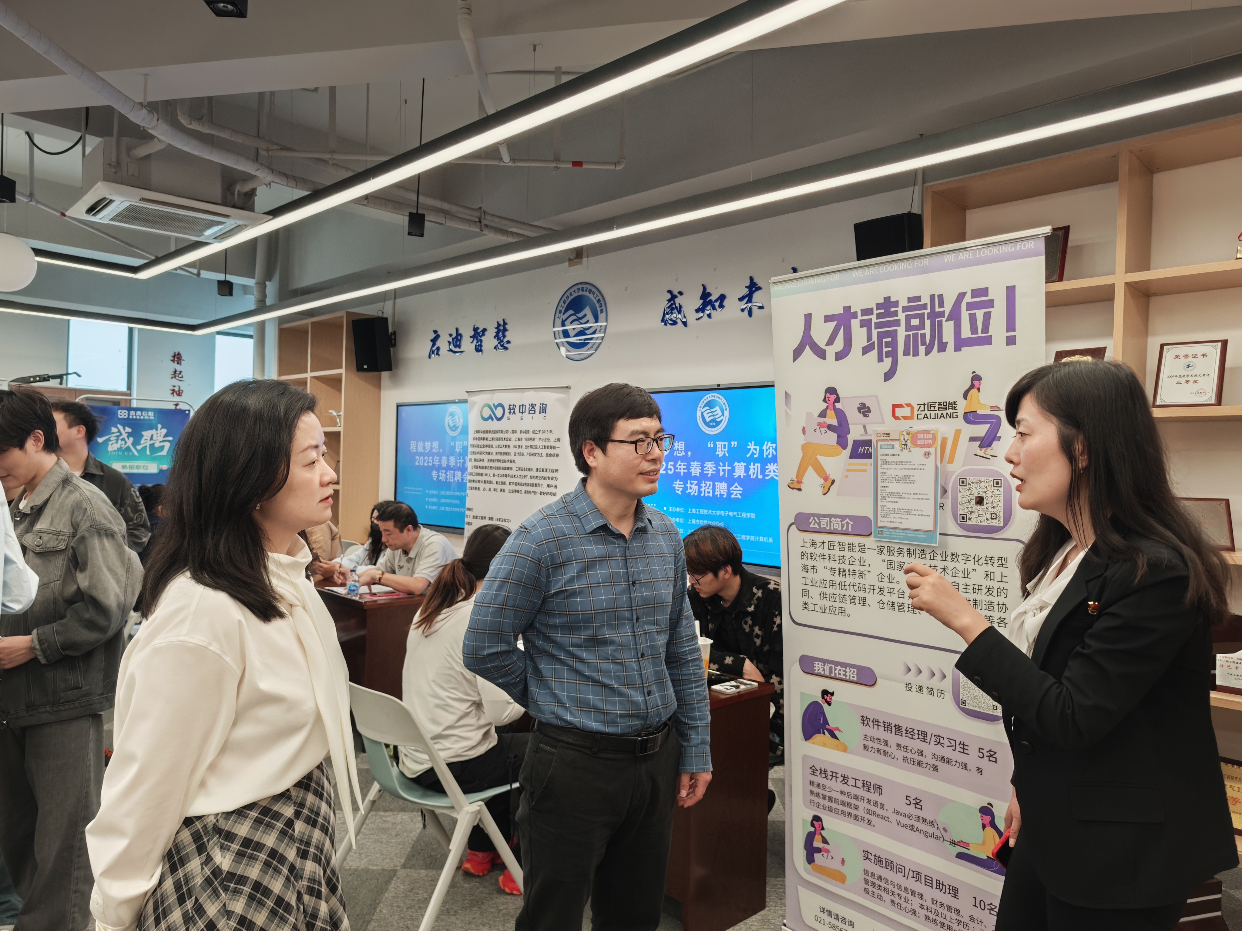 为深化产教融合,助力 2025 届毕业生高质量就业,4 月11日,3044永利集团联合上海市软件行业协会举办 “程就梦想 ‘职’为你来”2025 年春季计算机类专场招聘会。活动吸引了 10 余家企业参与,提供涵盖人工智能、大数据分析、软件开发等前沿领域的 200 余个优质岗位,为员工与企业搭建精准对接桥梁。