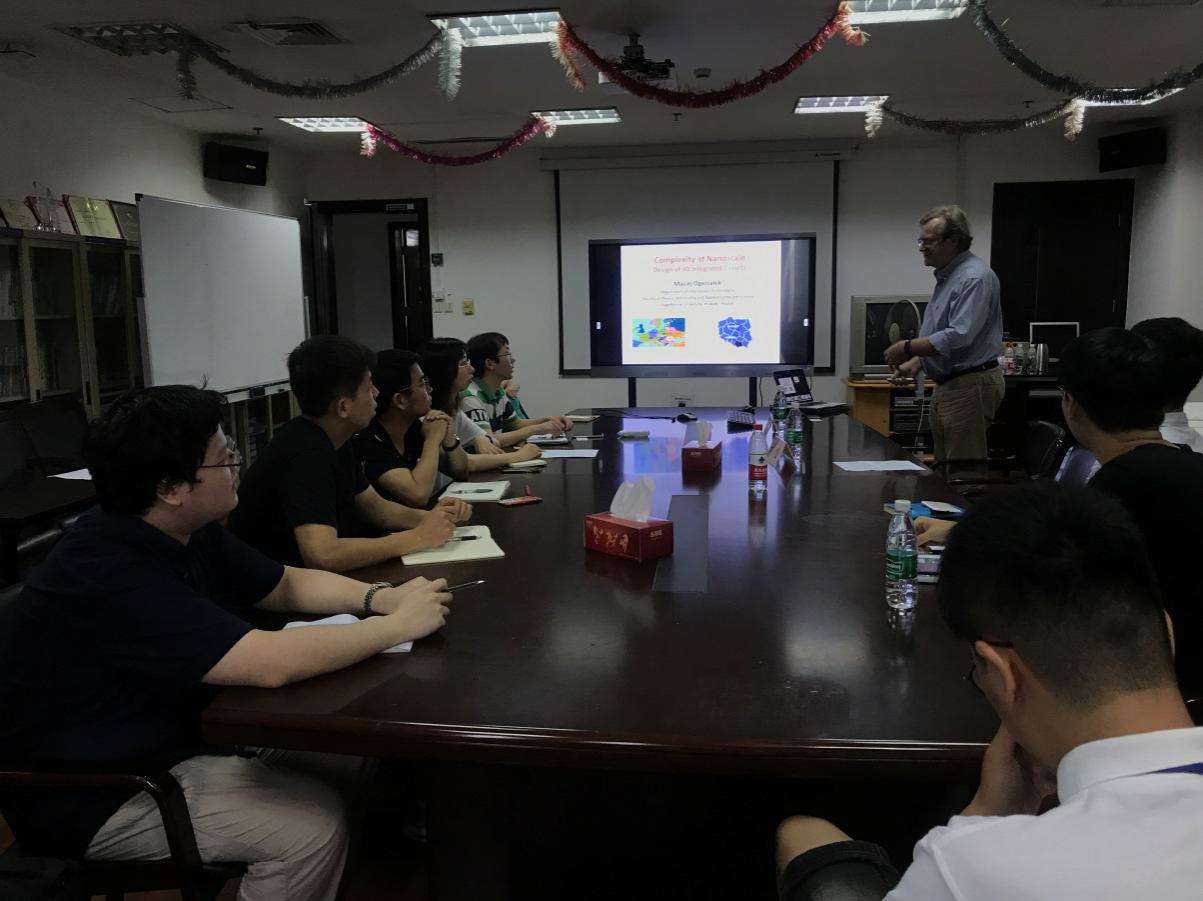 8月17日上午,波兰雅盖隆大学(Jagiellonian University Krakow, Poland)信息技术系教授Maciej J. Ogorzalek应3044永利集团、科研处邀请,在行政楼912会议室为广大师生作了题为“Complexity at nanoscale problems in design of 3D integrated circuits”的学术报告。报告会由副经理刘瑾主持,相关专业教师和研究生出席并与Maciej J. Ogorzalek教授进行了积极互动。