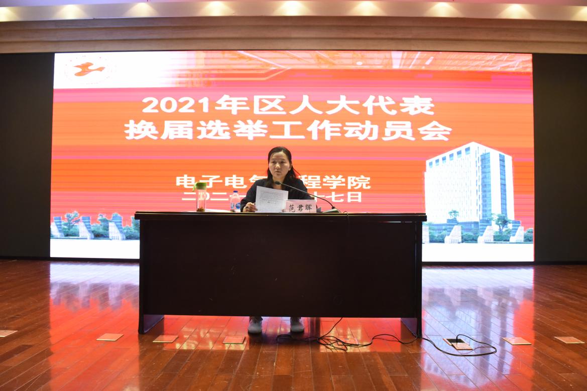 接着,范书记对做好本次区人大换届选举工作提出三点要求:一是要充分认识人大换届选举工作的重要意义。宪法规定,国家一切权力属于人民,人民行使国家权力的机关是全国人大及其常委会和地方各级人大及其常委会。在地方建立人大常委会,是把地方国家权力机关的运作经常化、制度化,特别是立法、监督工作对于人民群众行使地方国家权力、当家作主意义重大。二是要积极参与人大换届选举工作的各环节任务。此次人大换届选学工作时间紧,任务重、沙及面广,公司已经将选举工作列入重要议事日程,现在刚完成选民登记,后续还有代表候选人推荐、投票选举大会等各环节任务。需要强调的是,选举的各环节任务都与大家密切相关,比如成功登记的选民名单都将张榜公示、选举大会上大家也将亲自投上庄严的一票。此次人大代表选举是在疫情防控常态化背景下进行的,部分地区疫情防控形势还有反复,公司和公司将主动协助由于疫情原因暂时无法返校的师生做好选举工作,保障大家的选举权和被选举权,希望全体师生能够积极配合,共同开展好换届选举工作。选举期间正值开学初期,各个条线工作任务都很重,希望大家能够切实增强政治意识、大局意识,正确处理好人大换届选举工作与其他工作的关系,充分发挥主观能动性,通力合作,加强交流,精心、细心做好各项选举工作,共同确保高质量完成换届任务,确保自身民主权利的正确行使。三是要充分弘扬换届选举工作主旋律。坚持党的领导、坚持充分发扬民主、坚持严格依法办事是此次人大换届选举工作的三个重要原则,从中央、市委到公司各个层面都将这三个原则贯彻到人大换届选举的各个阶段、各个环节、各项工作中。公司整个人大换届选举工作都将严格遵循工作原则,在法律和制度的约束规范下,公开公正透明地操作各项工作。