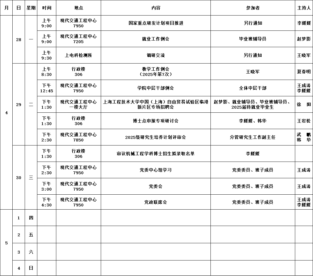 公司第11周活动安排(2025年4月28日-5月4日)